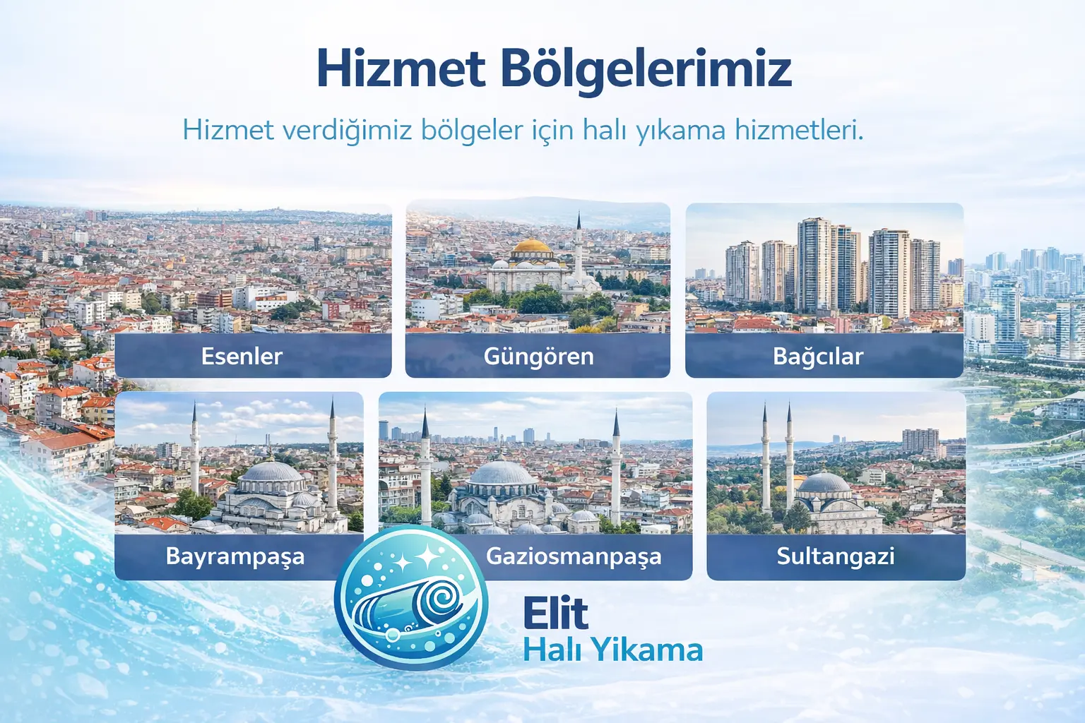 Elit Halı Yıkama olarak İstanbul Avrupa Yakası’nda birçok bölgede profesyonel halı yıkama hizmeti sunuyoruz. Esenler başta olmak üzere Bağcılar, Güngören, Bayrampaşa, Gaziosmanpaşa, Sultangazi ve Başakşehir bölgelerinde hızlı servis, kaliteli temizlik ve müşteri memnuniyeti odaklı çalışıyoruz.